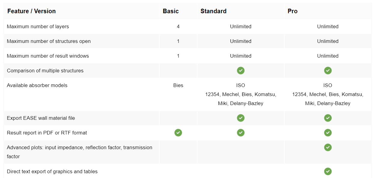 - Simulation of absorption, reflection and transmission of sound by multi-layer structures (limited to 4 layers in SoundFlow Basic)