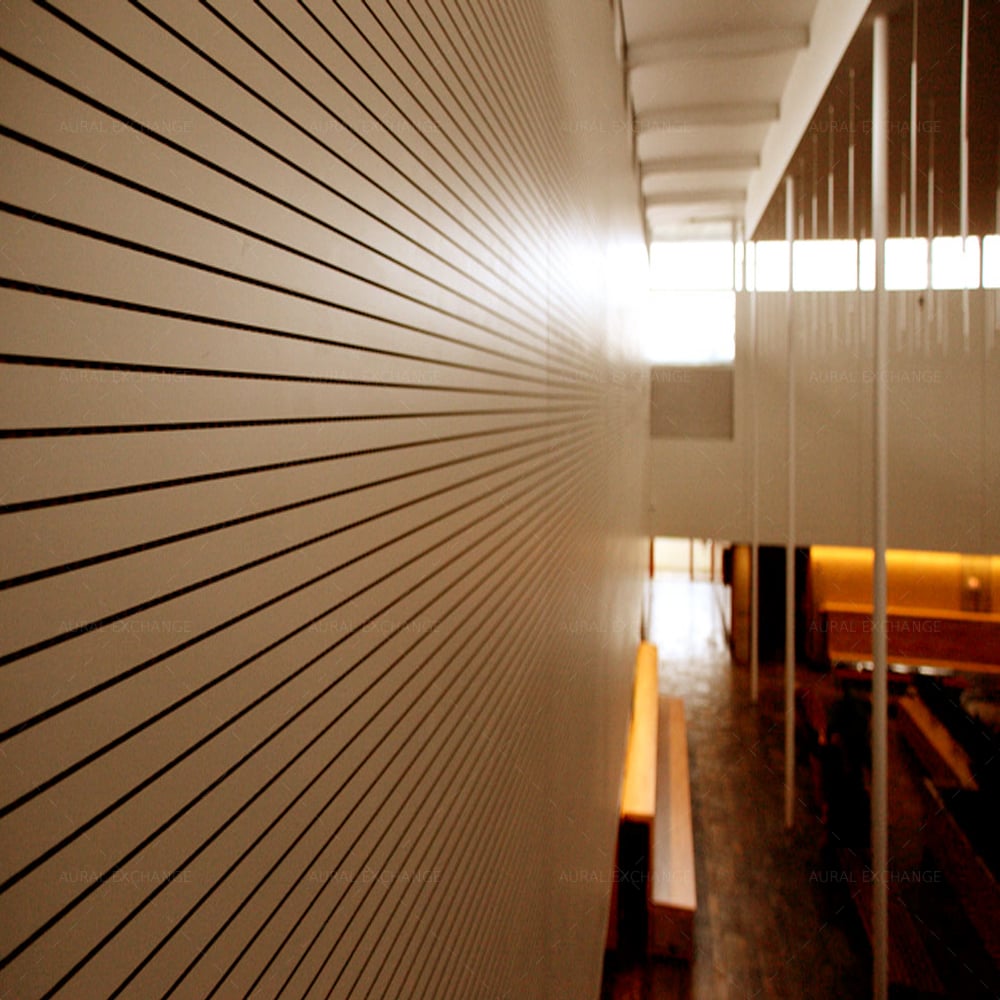 Nankarrow Proslat™ panels come in a variety of configurations to meet all acoustical requirements with great solution for sound absorption and noise control for any type of room. The tongue and groove joints allow two flat pieces to be joined strongly together making a single flat surface. Highly recommended by architects because of its classy look, easy to assemble and low maintenance. The material used is Fire-rated HDF. (high density fiberboard), designed with grooves on viewed face and holes on the back side known for its excellent sound absorption properties.